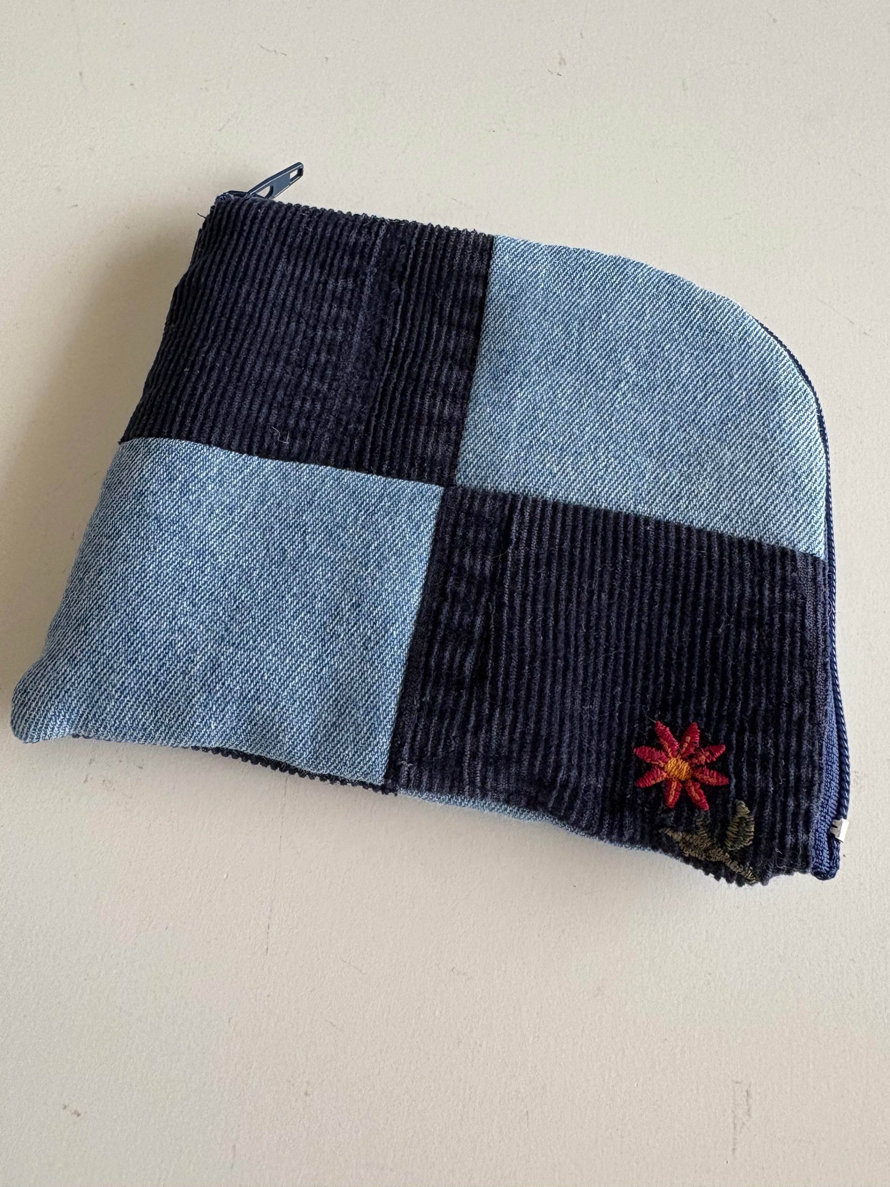 古着のデニムシャツをリメイクしたお財布ポーチ。