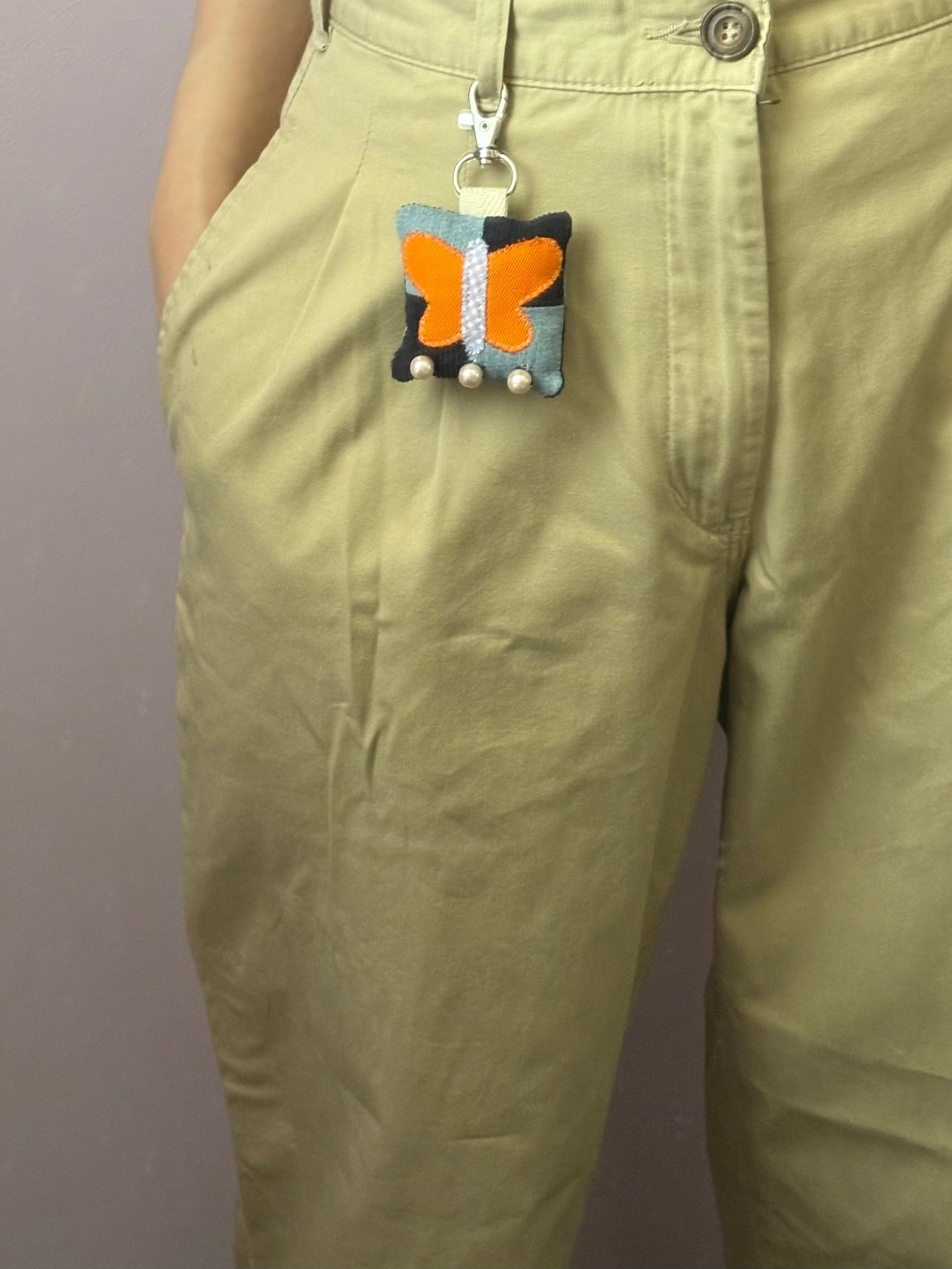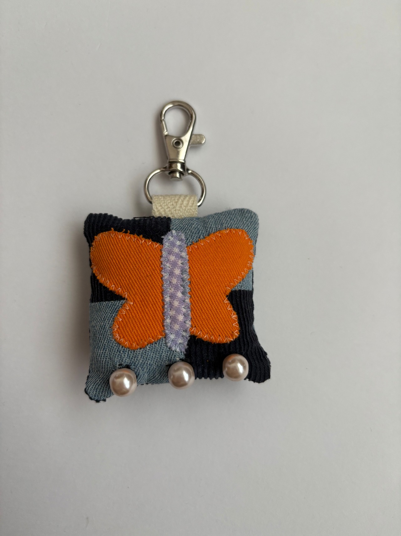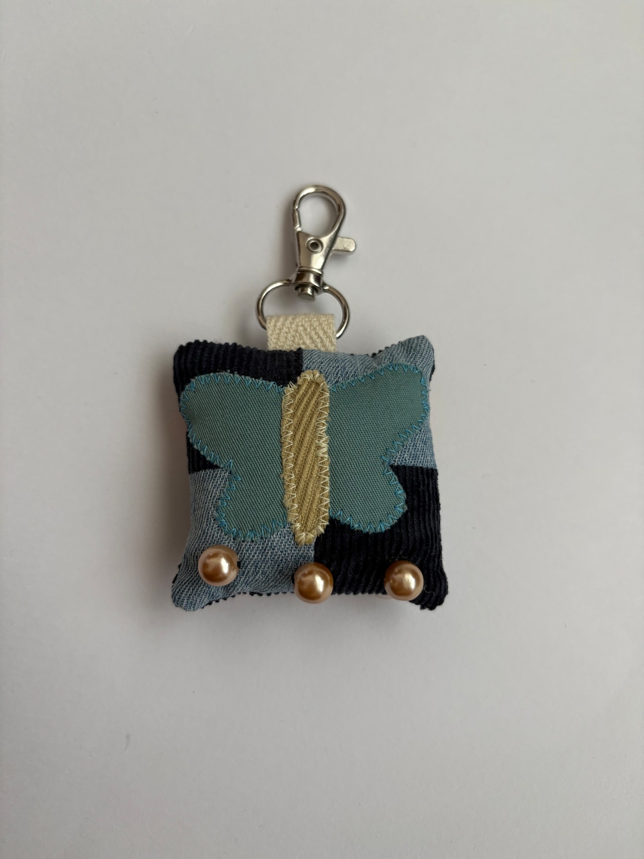 古着のデニムシャツをリメイクしたキーホルダーです!