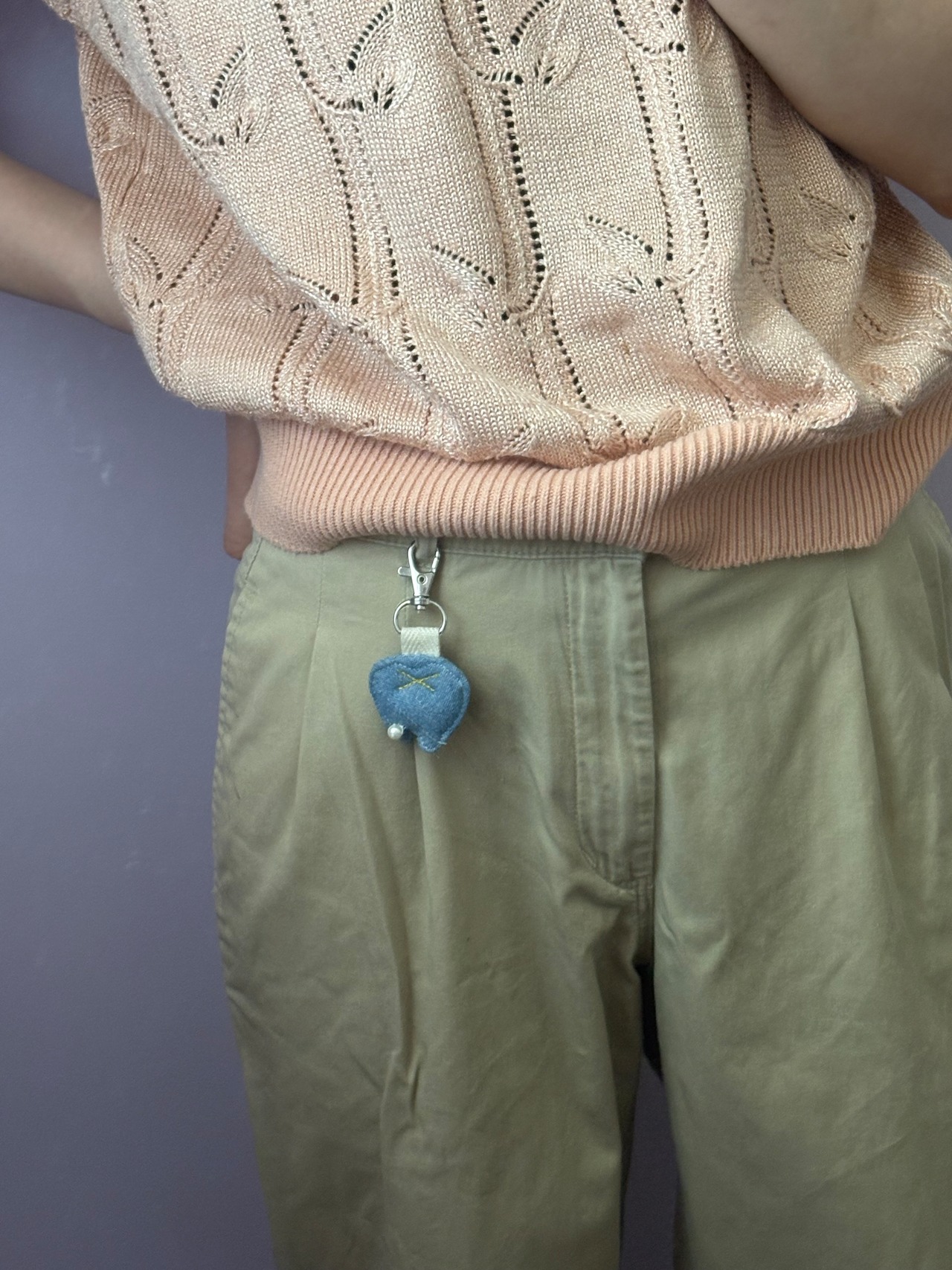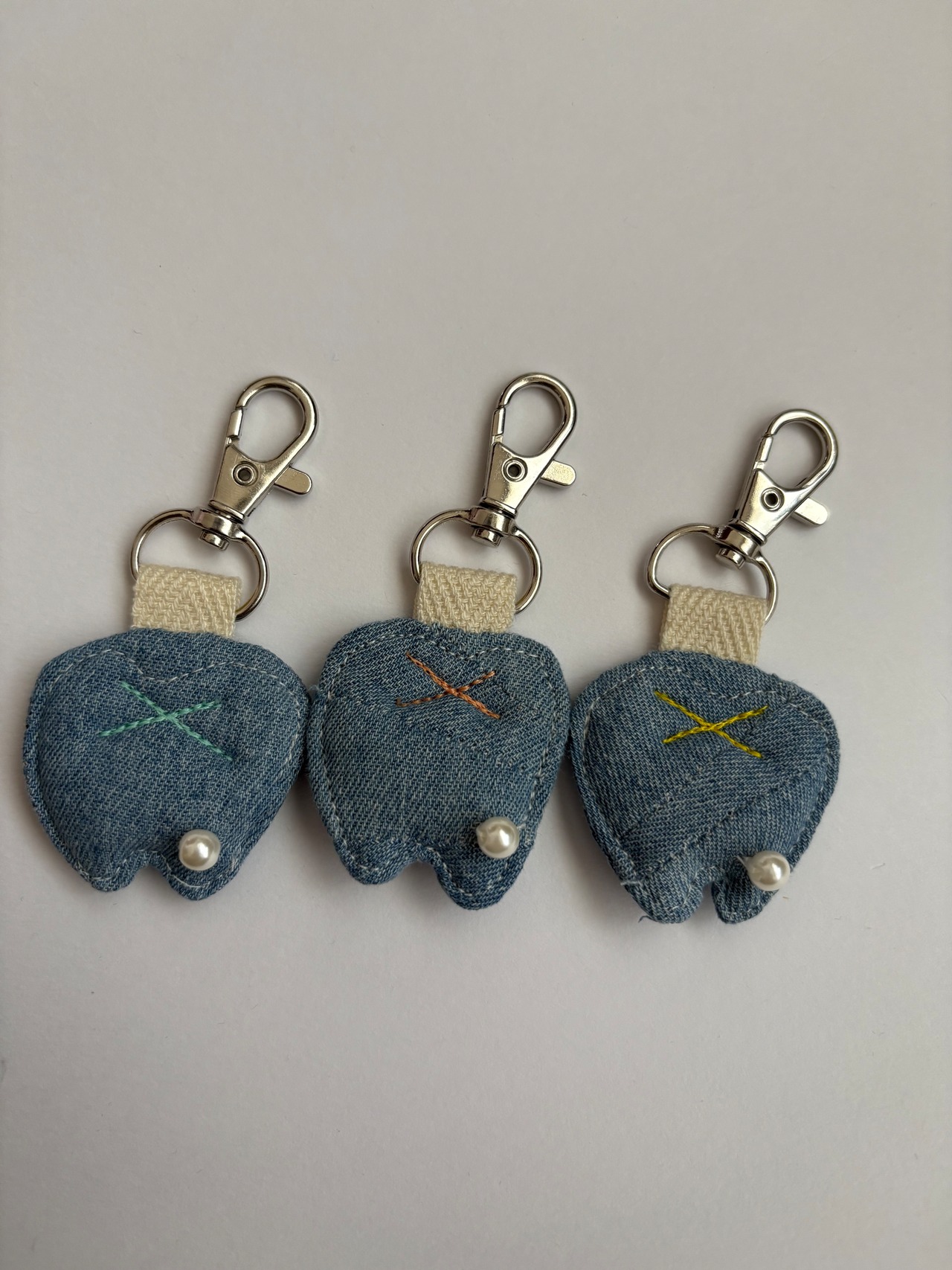 古着のデニムシャツをリメイクした歯キーホルダーです!