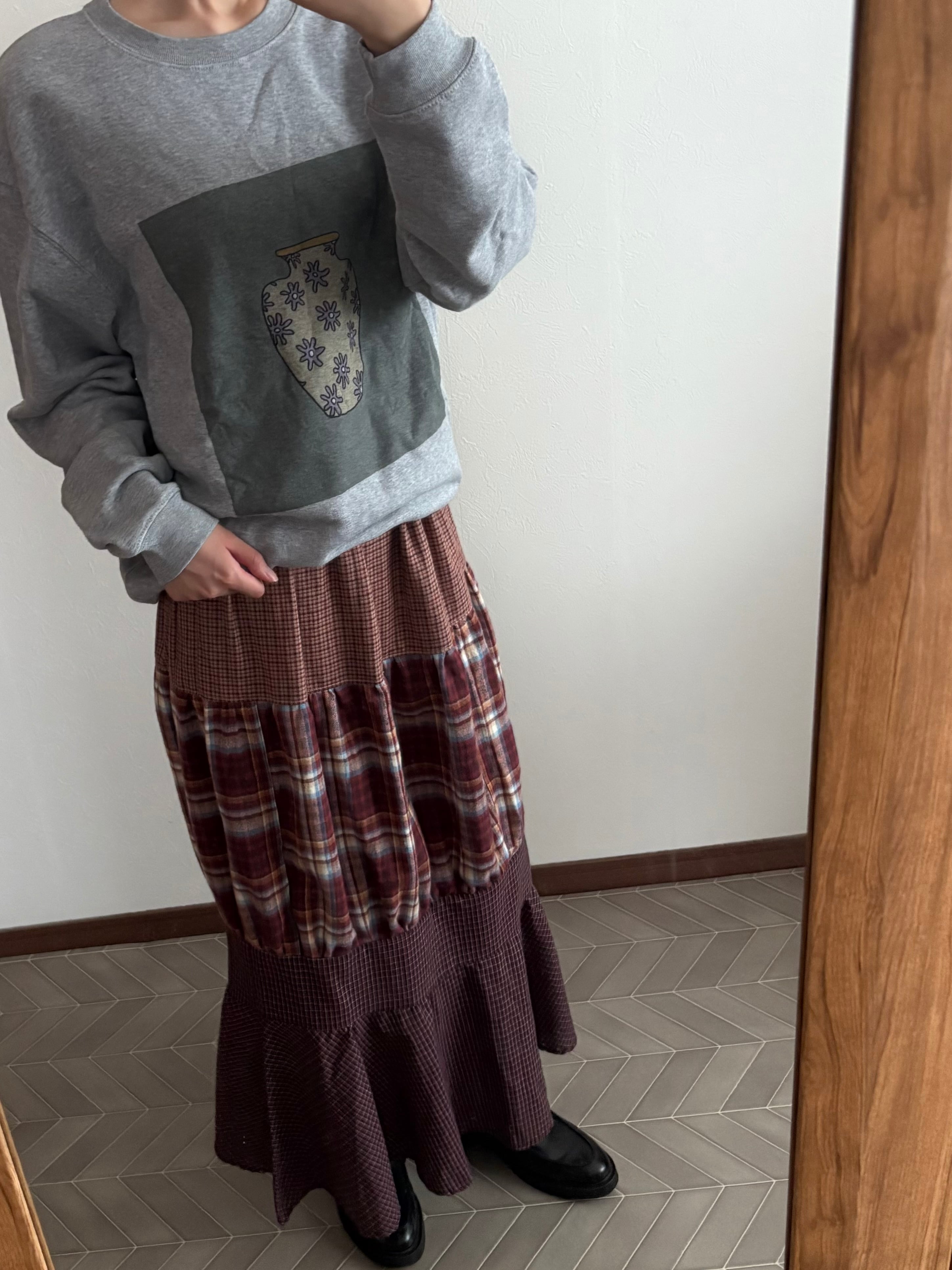 古着をリメイクしたティアードスカート。