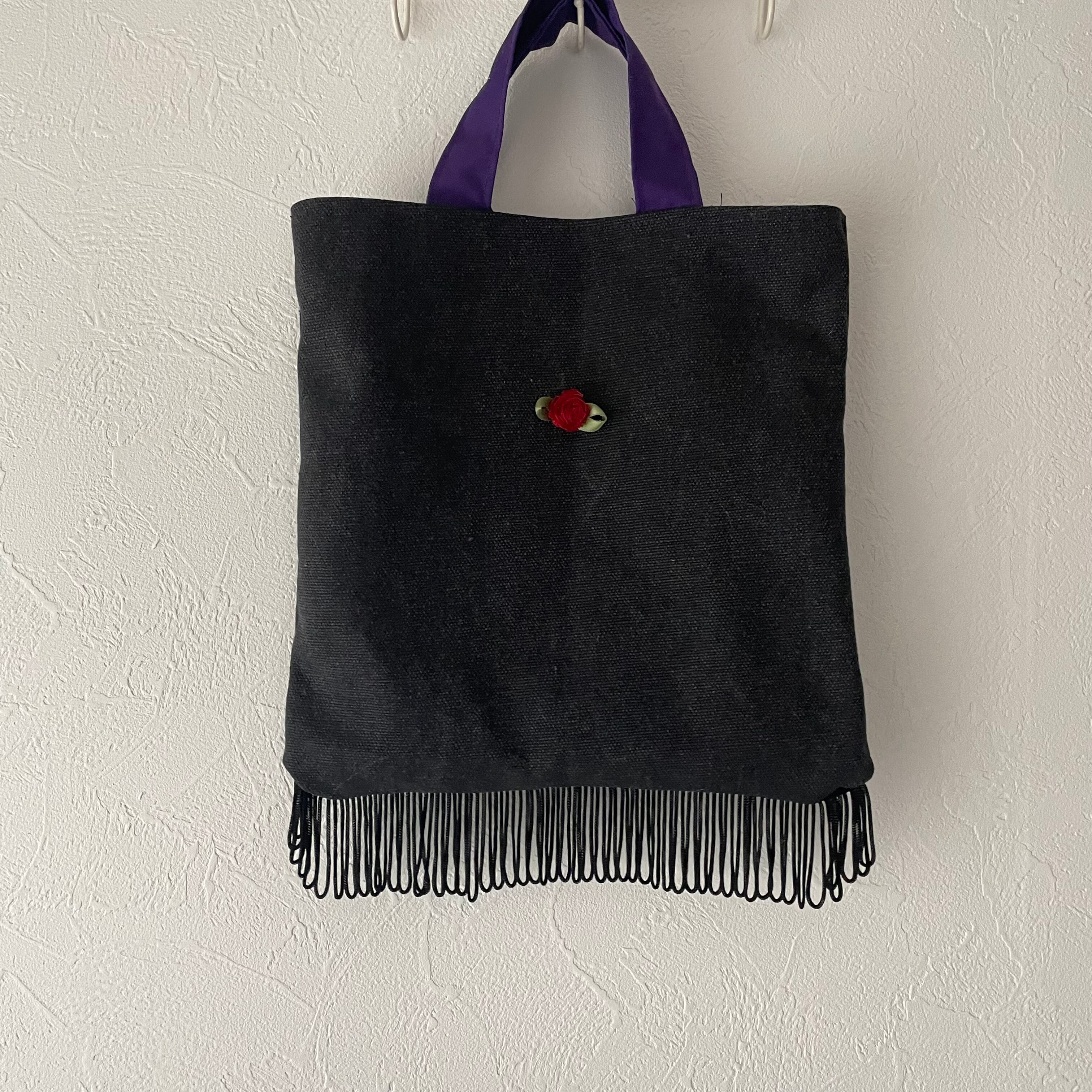 表地はかたくしっかりした生地で、フリンジと小さいバラがアクセントに♡