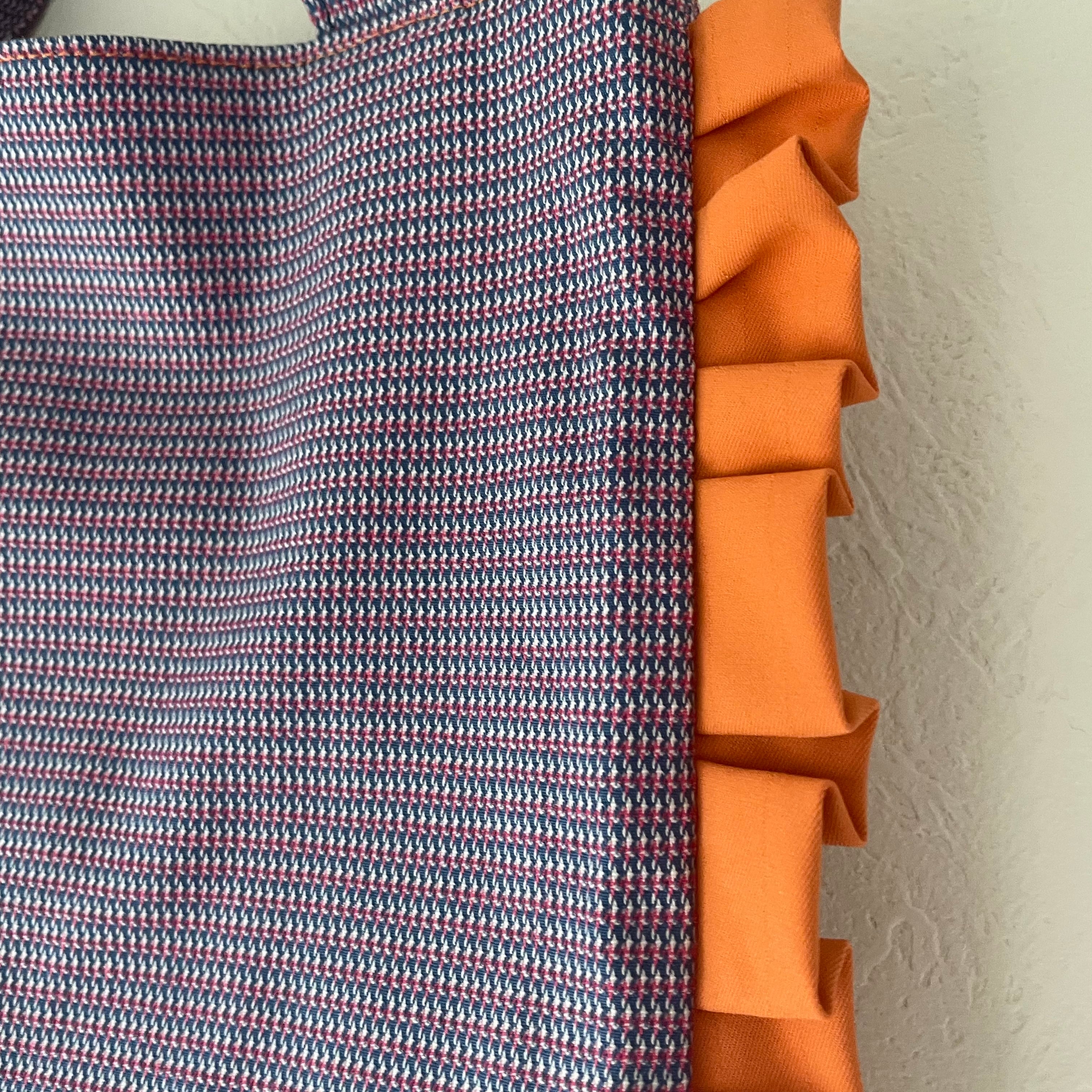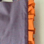 可愛らしいサイドフリルが特徴的なハンドバッグです。