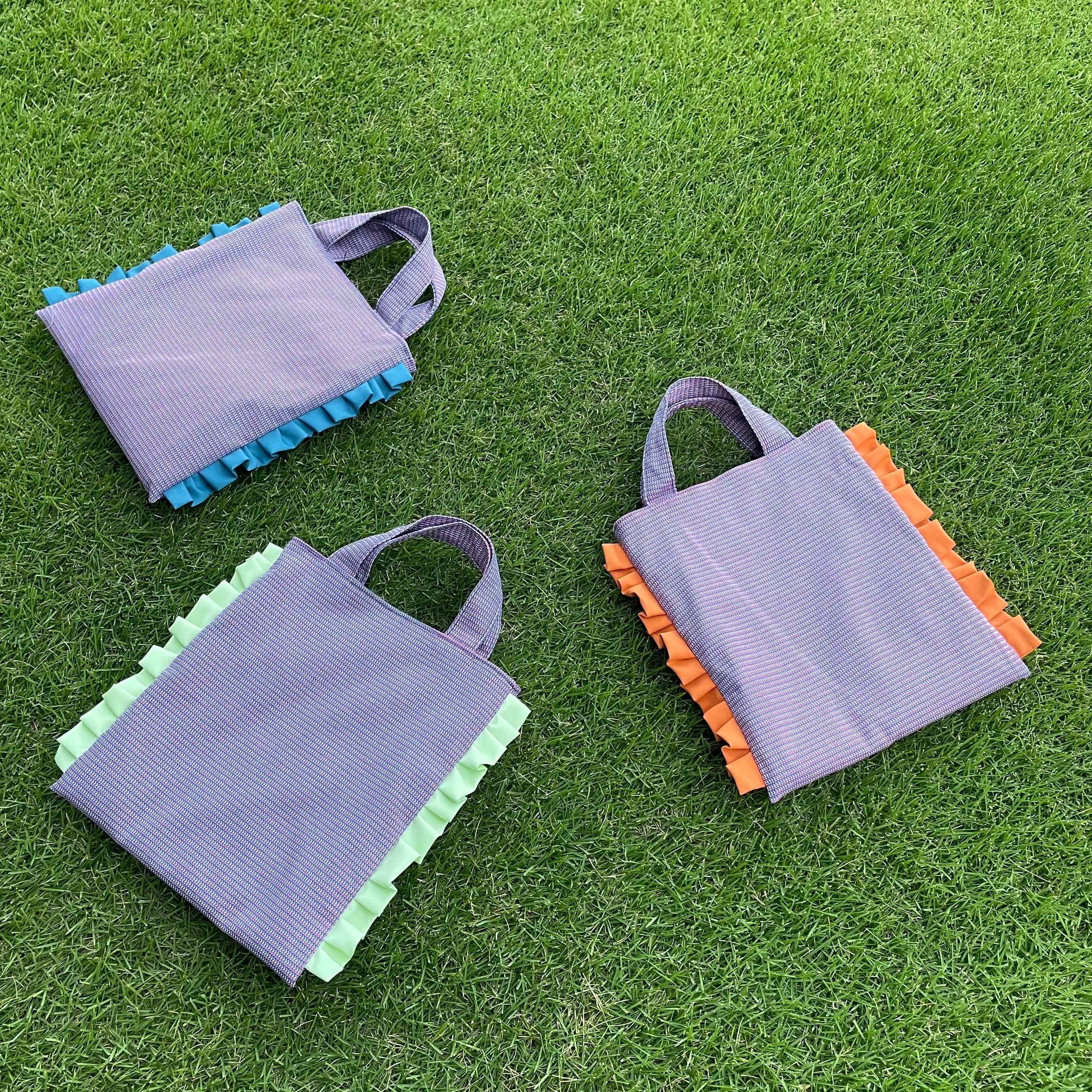 小ぶりなサイズ感で、ちょっとしたお出かけにぴったり。裏地も同じカラーのフリルで仕上げています!