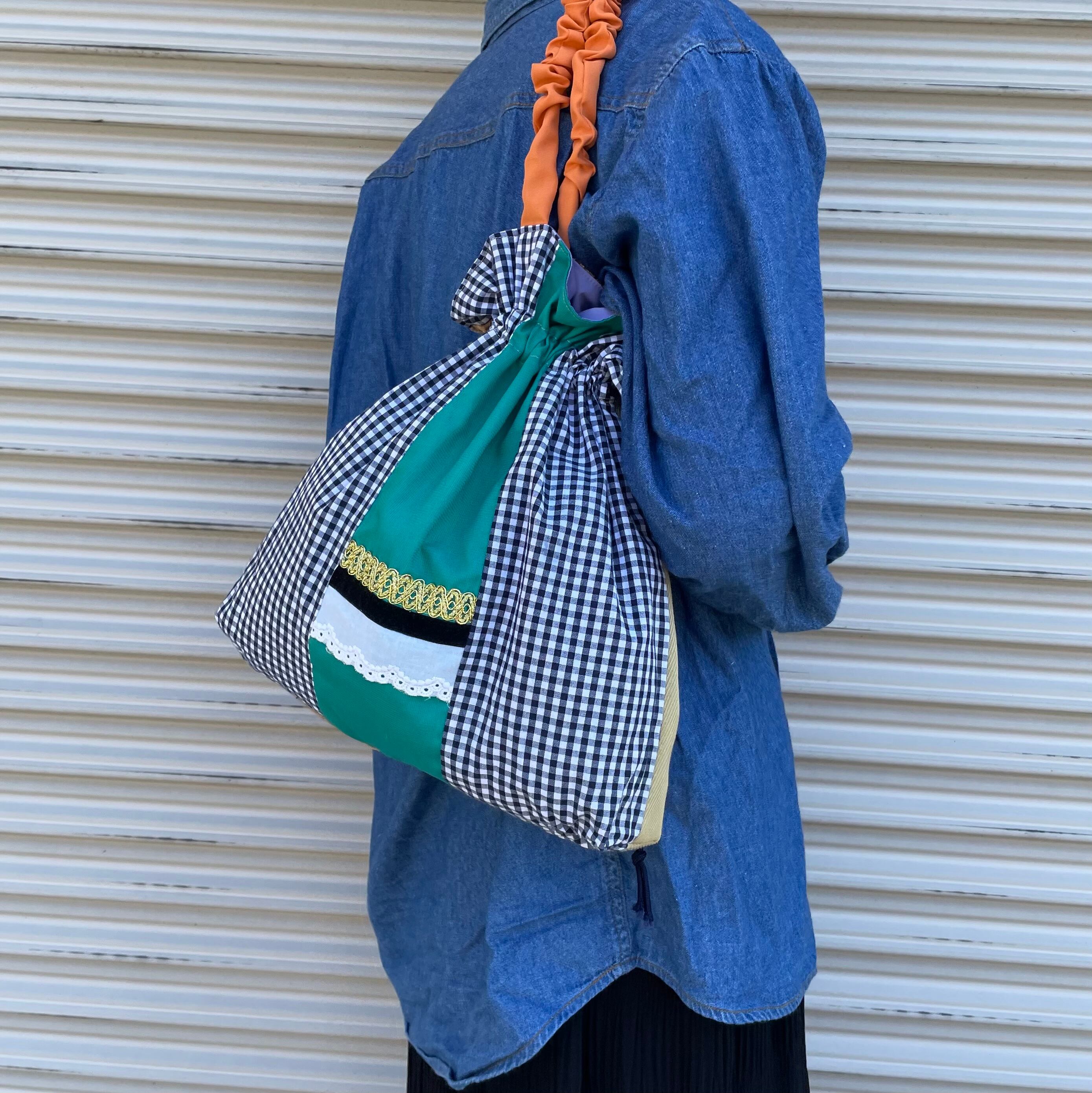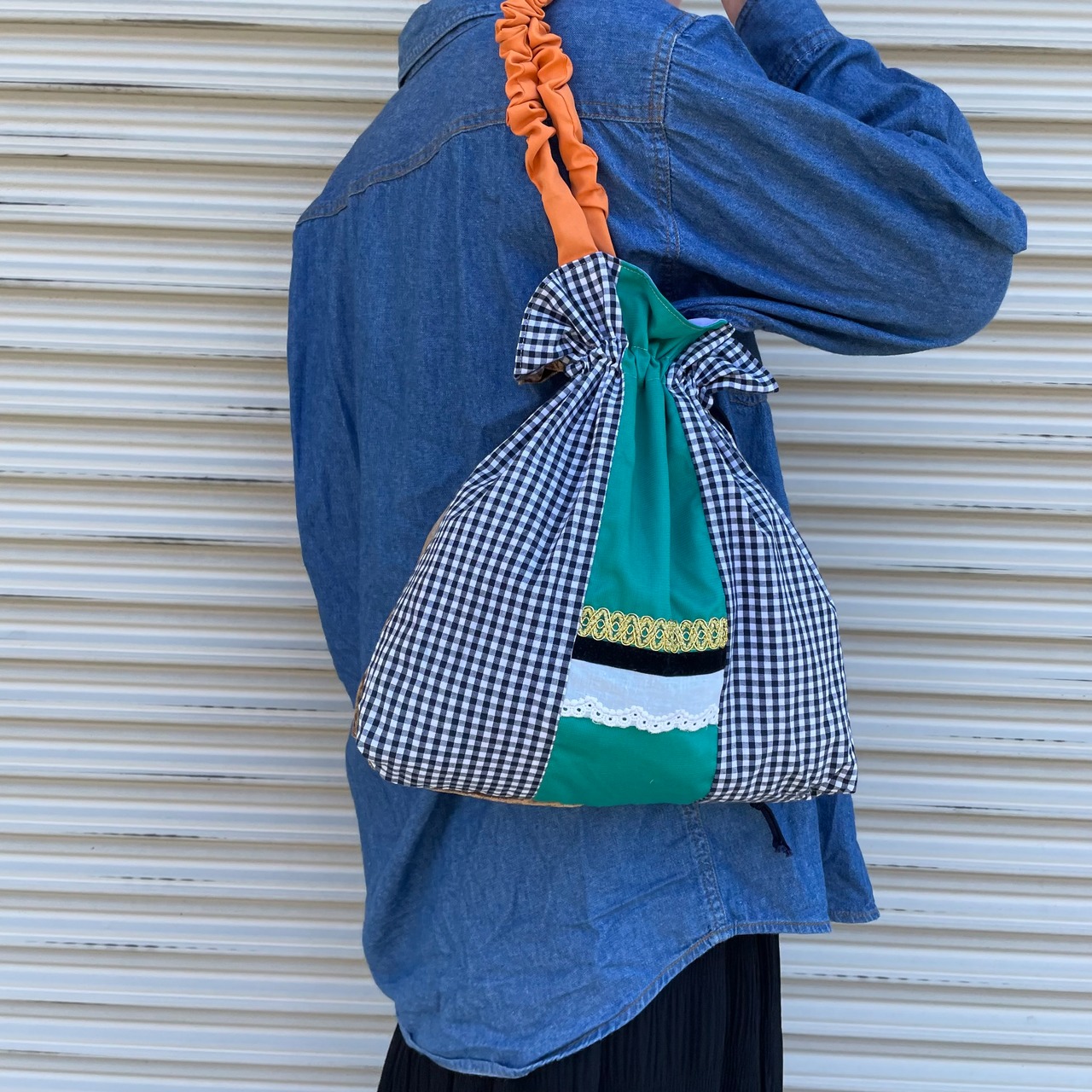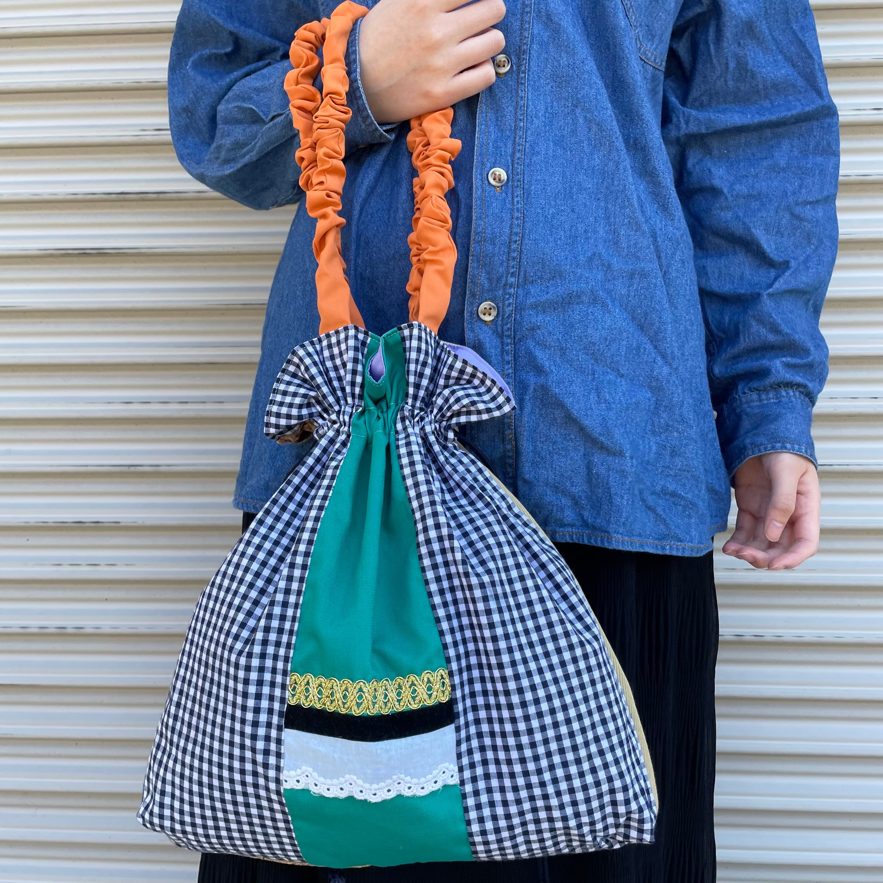 巾着の上部にはしっかりとした持ち手が付いており、肩がけもできます!