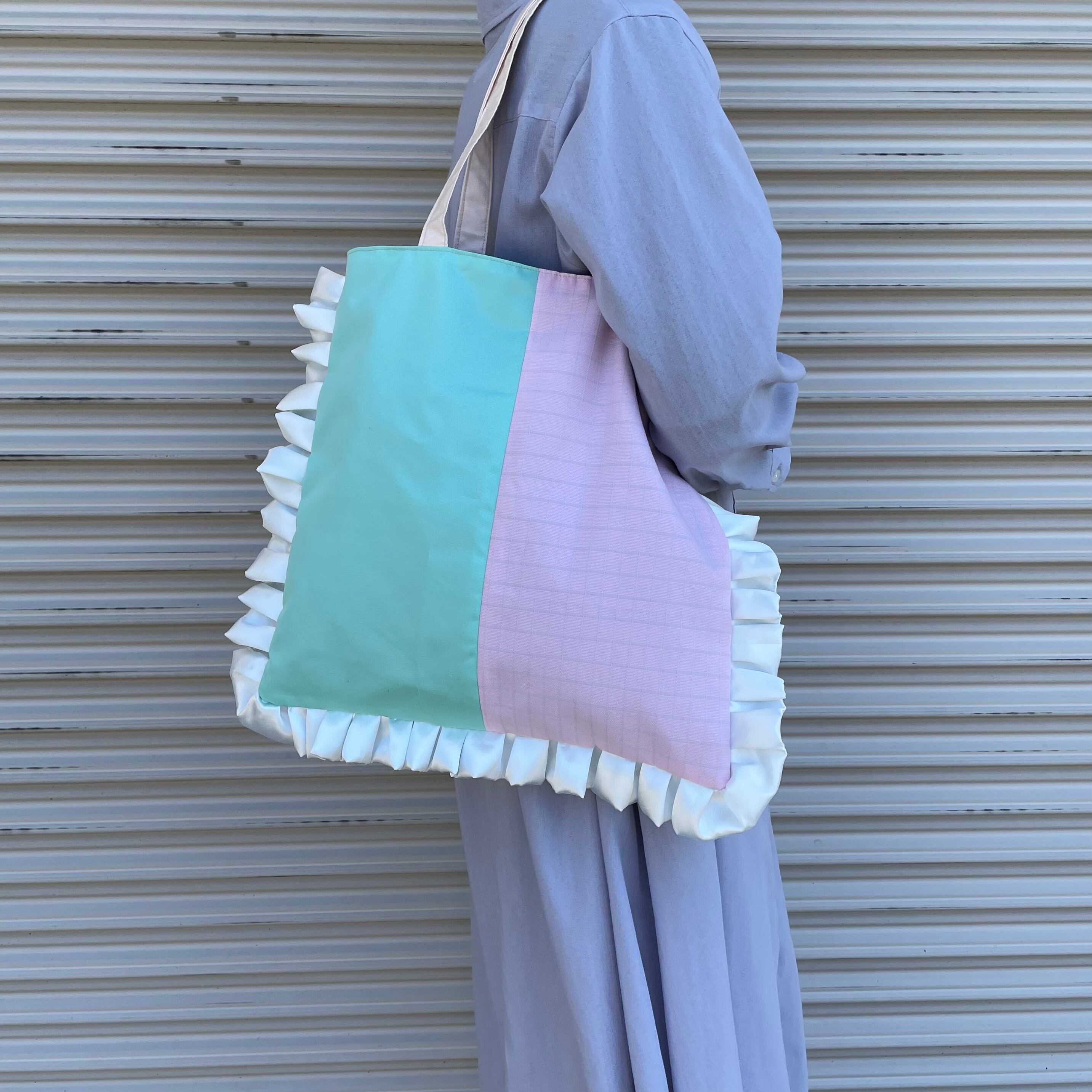 ピンクのチェック×ミントグリーン×白サテンの爽やかで可愛らしい組み合わせ!!