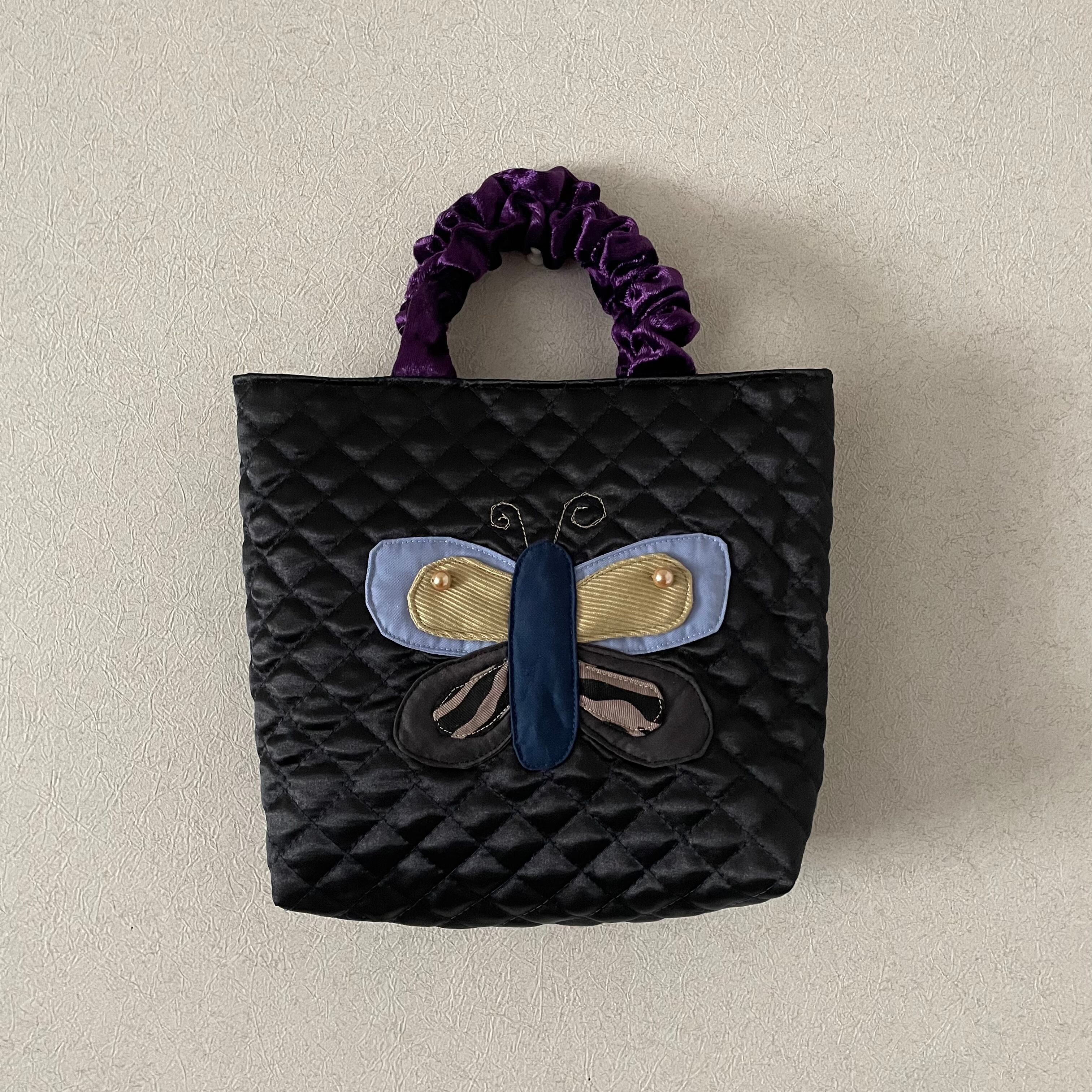 蝶モチーフは、ひとつひとつパーツから製作しており、ビーズは手作業で縫い付けています。