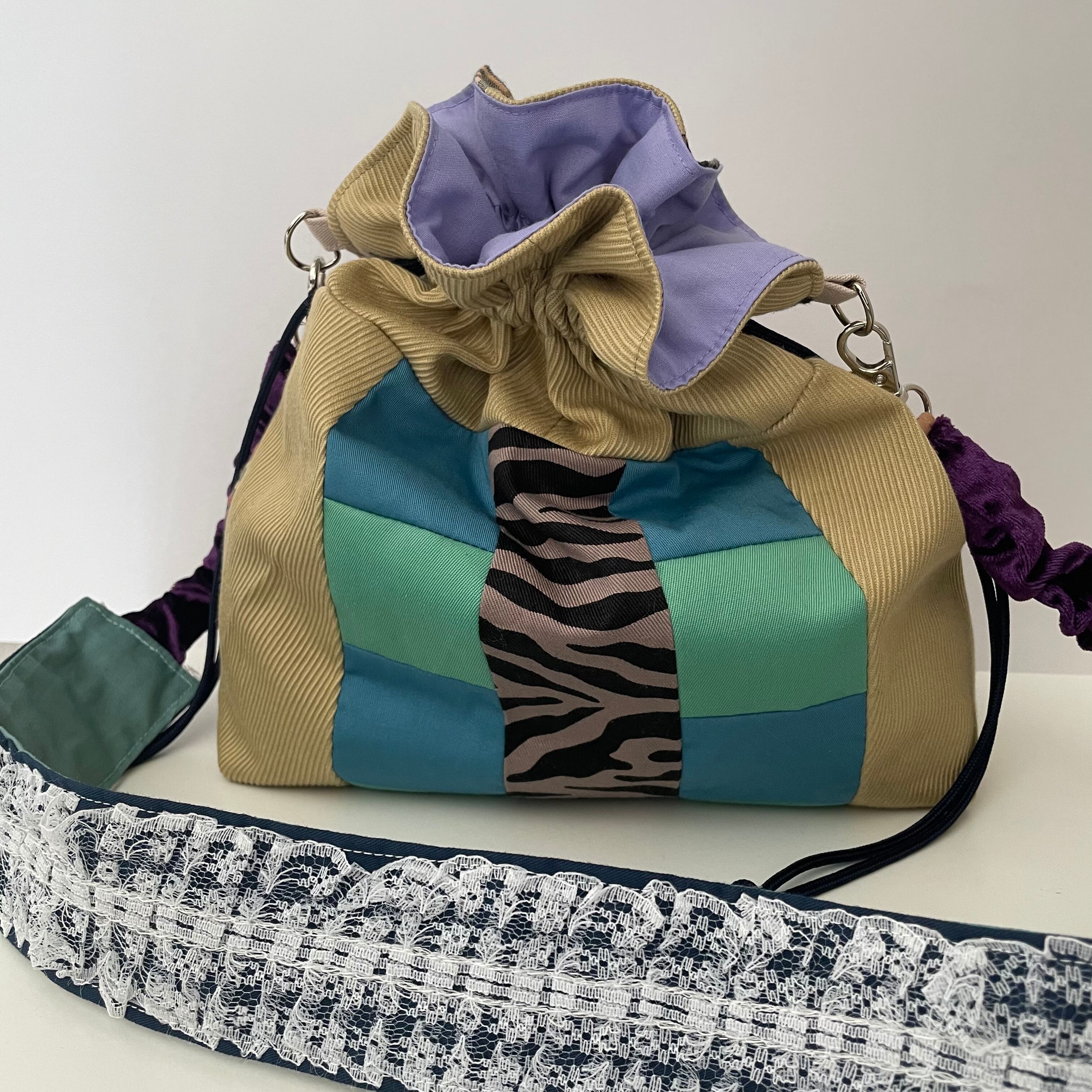 ショルダー部分を取り外せば手持ちの巾着バッグとして使える2way巾着バッグです。